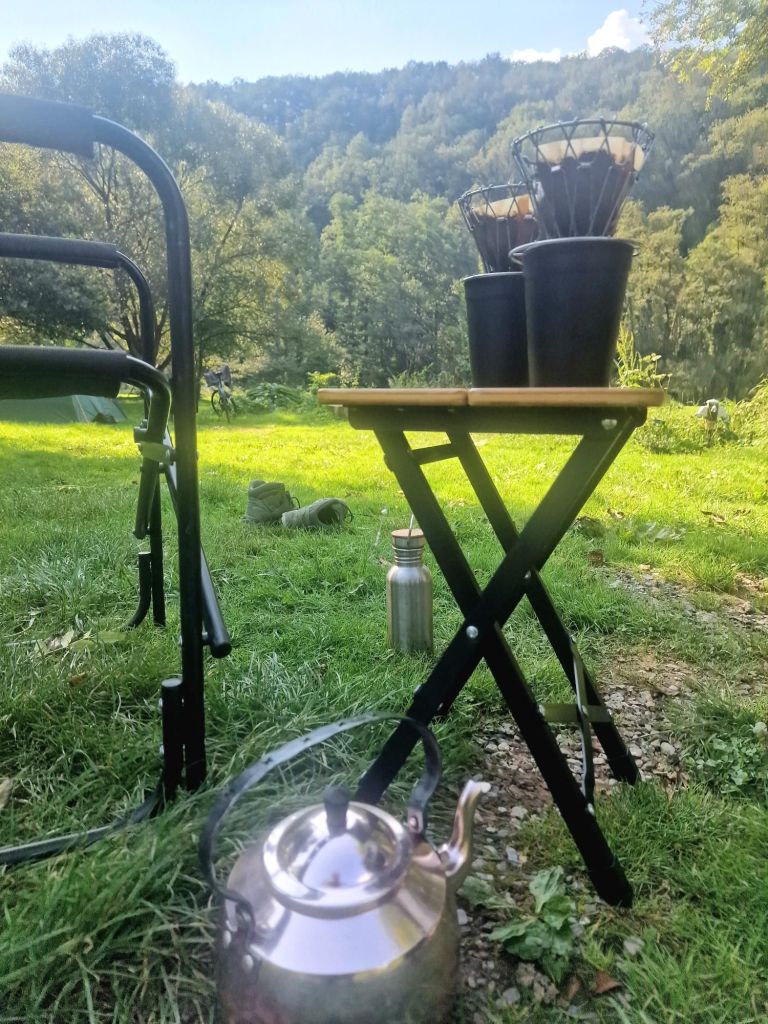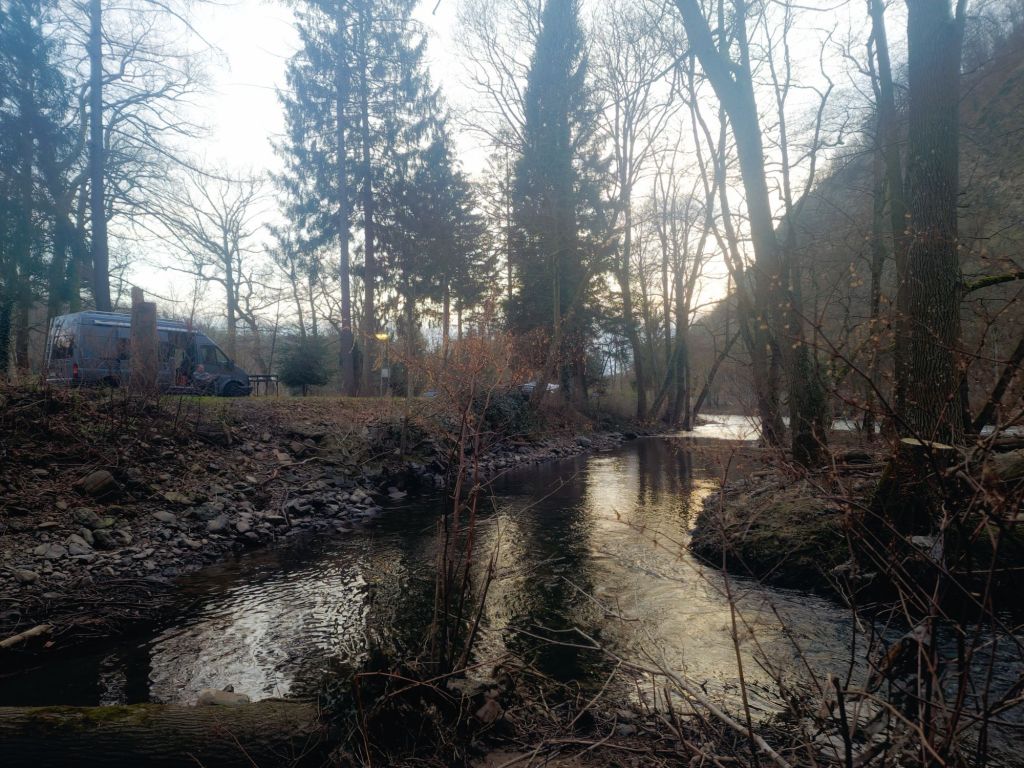 Ik heb keelpijn, ik piep en hoest en snotter. Voor de zoveelste keer zien we ons kampeerweekend weer in het water vallen maar na een lading siroop en tabletjes van de apotheek gokken we het er gewoon op. We vertrekken deze keer al op vrijdag na het werk. Het wordt Dasburg, een klein dorpje in de Eifel. Een oude favoriete plek waar we af en toe eens terugkeren. Ik heb thuis broodjes gesmeerd voor onderweg, scheelt weer in tijd. Om 21 uur zijn we aan de camping.