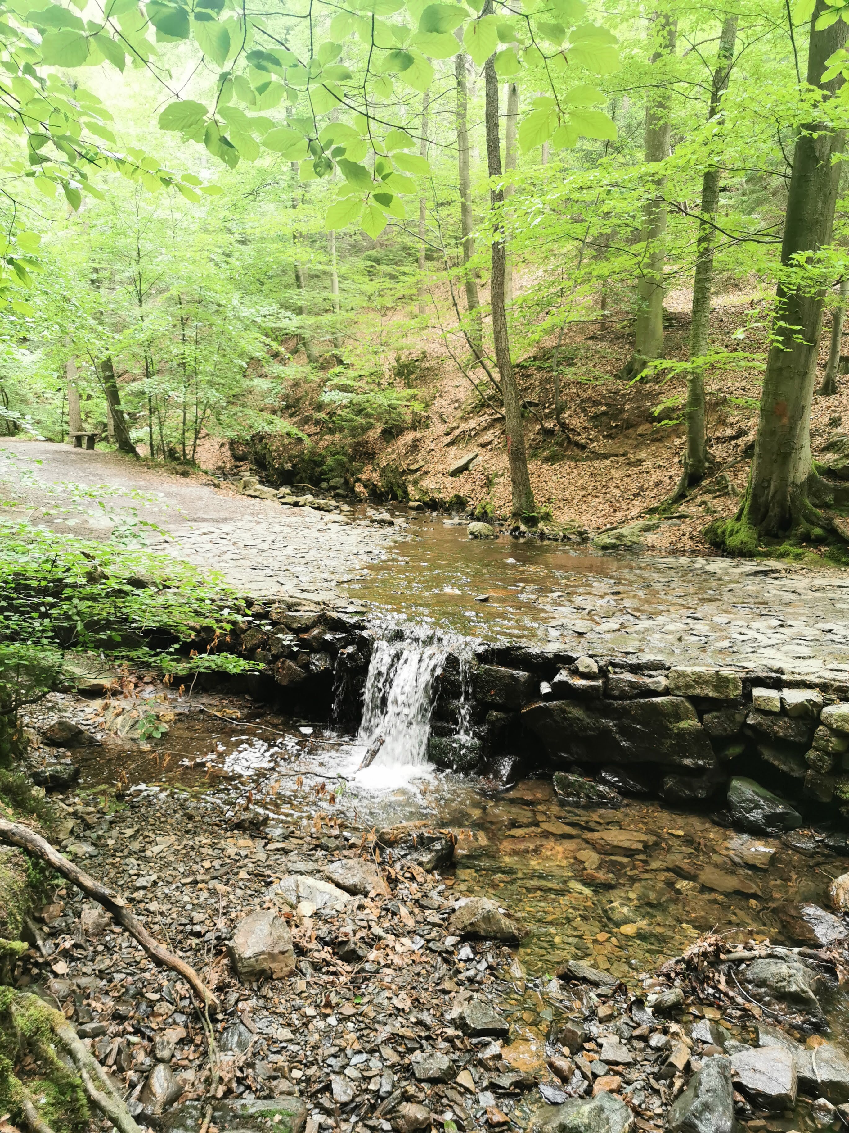 Fles water in de rugzak, wandelschoenen aan, en het bos in. Het begint al mooi. De Ninglinspo kabbelt tussen de bomen door, en je wandelt met het riviertje mee, af en toe overstekend via houten bruggetjes. Daarna wordt het af en toe wat moeilijker. Klimmen, klauteren, kijken waar je je voeten zet omdat er veel gladde stenen liggen. Op sommige plekken kun je een beetje vals spelen en een makkelijker pad kiezen. Dit doen we niet zo vaak, we nemen meestal het mooiste pad, en dat is direct naast de rivier. Het blijft warm, en geregeld maken we even een stop voor een slok water en een foto.