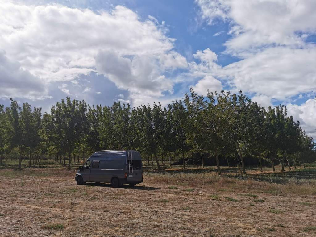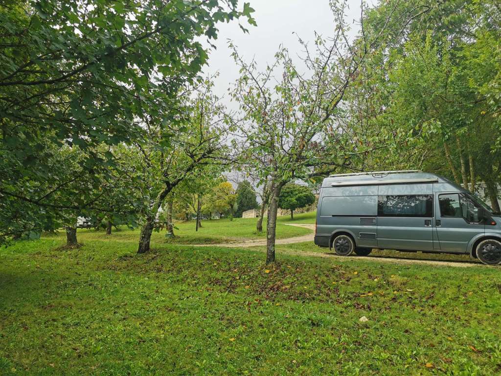 Het is bewolkt als we opstaan, maar de zon laat zich al een heel klein beetje zien. We staan in de enorme tuin van het kasteel, waarvan de eigenaar tevens een wijnproducent is. Ruimte zat hier.