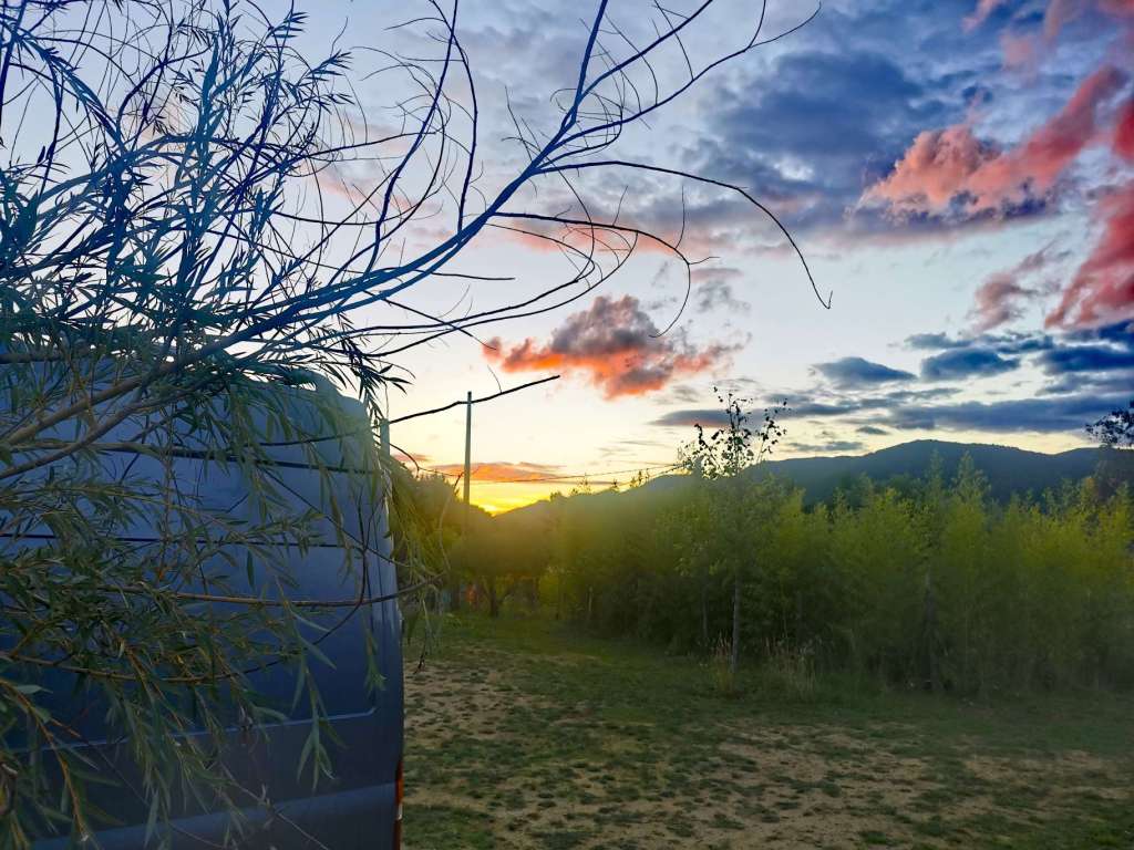 Het werd hier vannacht niet echt donker. Verschillende keren wakker geworden dat ik dacht dat het al ochtend was. De maan scheen op de stenige ondergrond, en veel van die stenen hebben hier een soort glittertjes, wat een leuk effect gaf. Ook de wolken veranderen hier met de minuut. Donkere, lichte, witte, en zelfs wat rode toen de zon opkwam. Eindelijk zie ik eens een zonsopgang tijdens deze reis. Ik ben meteen klaarwakker, tuimel over Luc heen het bed uit, en kan nog net wat mooie beelden vastleggen alvorens het vurige weer verdwenen is.