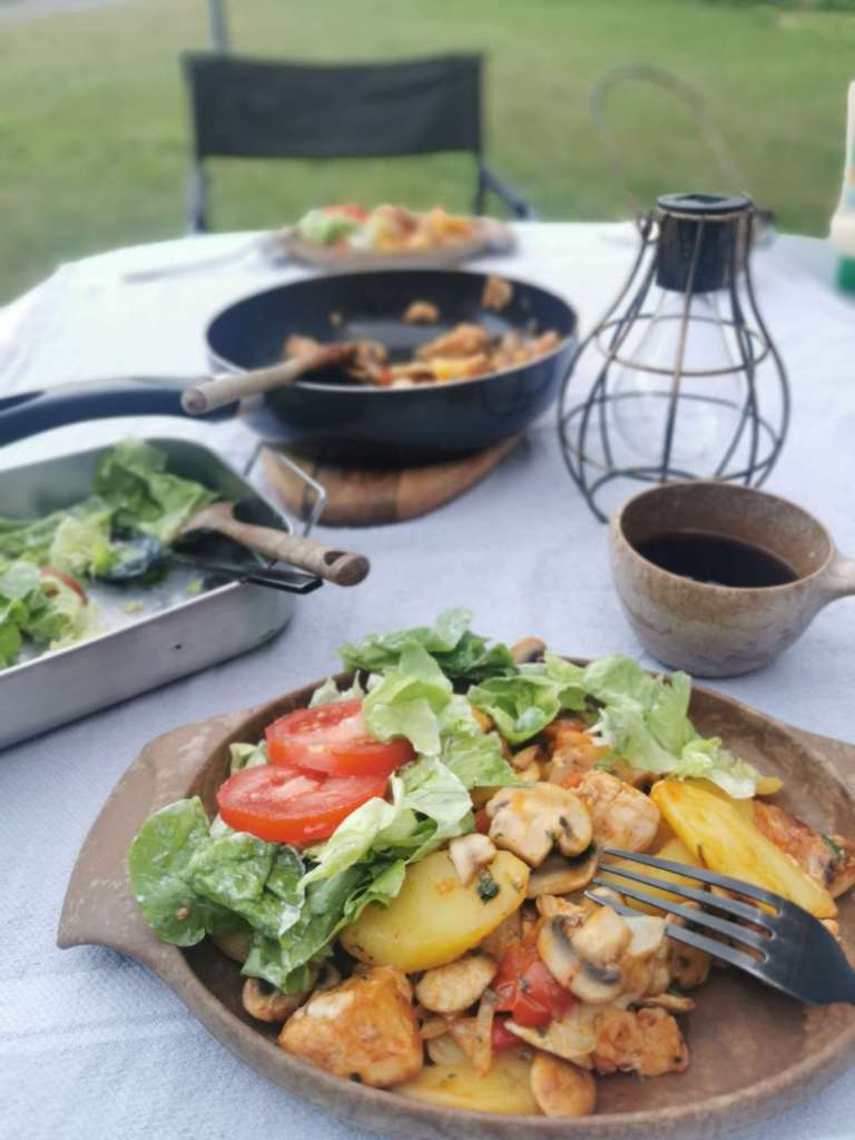 We blijven een tijdje aan het water zitten, tot het tijd is om te eten. Wat kip en aardappelen mix ik met enkele restjes van gisteren tot een avondmaal. Het smaakt.