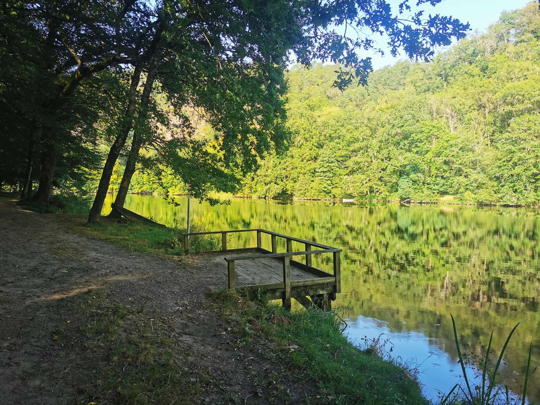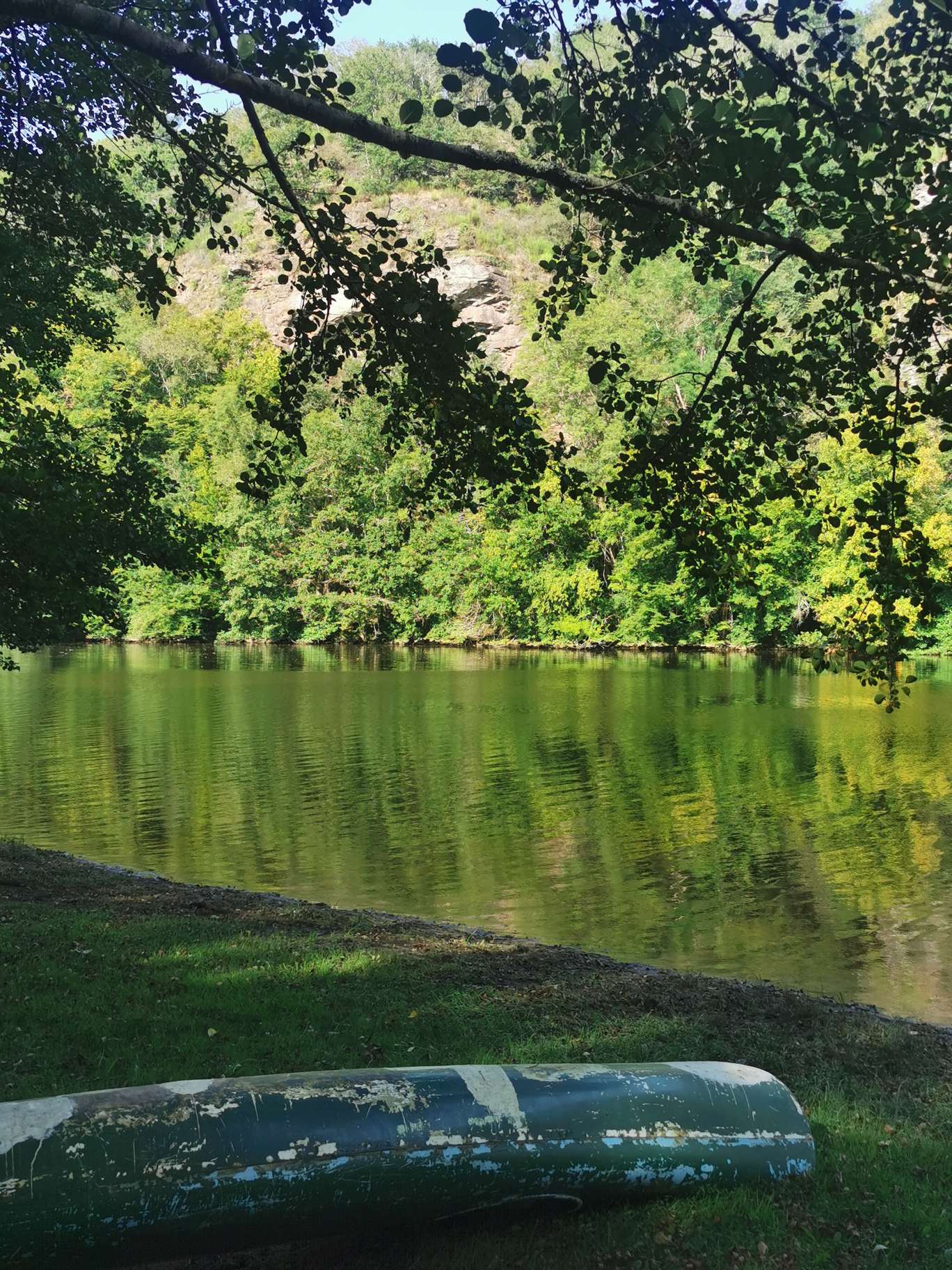 Nou, daar zitten we dan. Op een megagrote lillike camping vol vaste gasten. Als we de camping eens verder oplopen blijkt het een verborgen parel te zijn. Die ene rij vaste caravans was de enige rij. Ons voetbalveld was de plek voor de losse. Iets verder staan nog een paar chalets voor verhuur. En dan is er een groot veld aan de rivier. Aan de linkerkant een strandje, rechts een stuk bos. Picknickbankjes. Een rotswand aan de overkant. Magnifique!