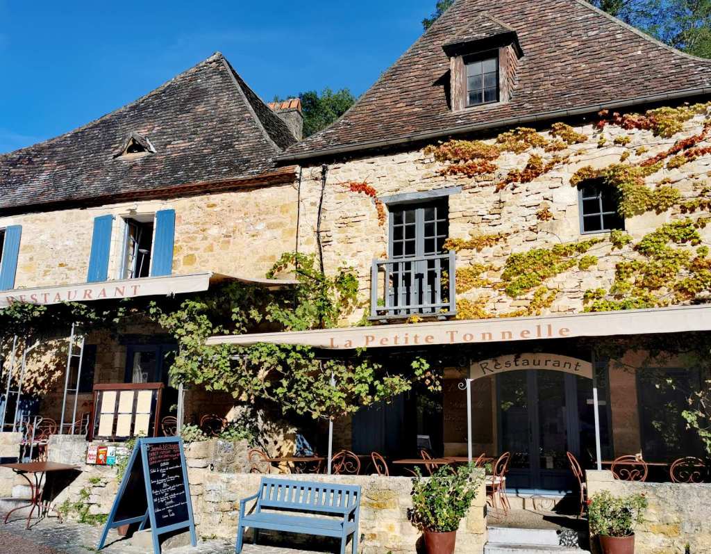 Als eerste bezoeken we Domme. Het is een hogergelegen middeleeuwse plaats dat volledig ommuurd is. Via een poort in die muur kom je er binnen. We wandelen wat straatjes door, en als we boven zijn hebben we een panoramisch uitzicht.