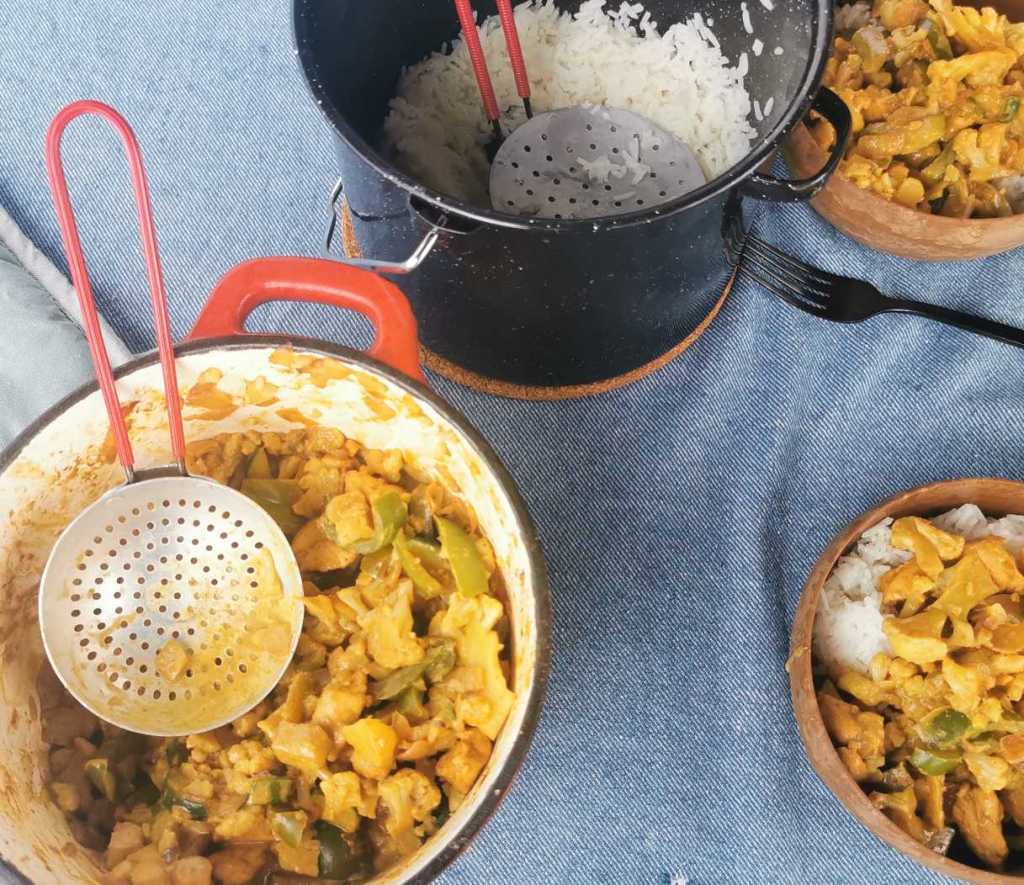 Omdat het eigenlijk een frisse dag zou worden met regen en onweer, had ik voor vandaag een pittige curryschotel voorzien. Het is meteen ook het enige dat ik voorzien heb, dus het moet maar. We krijgen het alleen maar nog warmer.