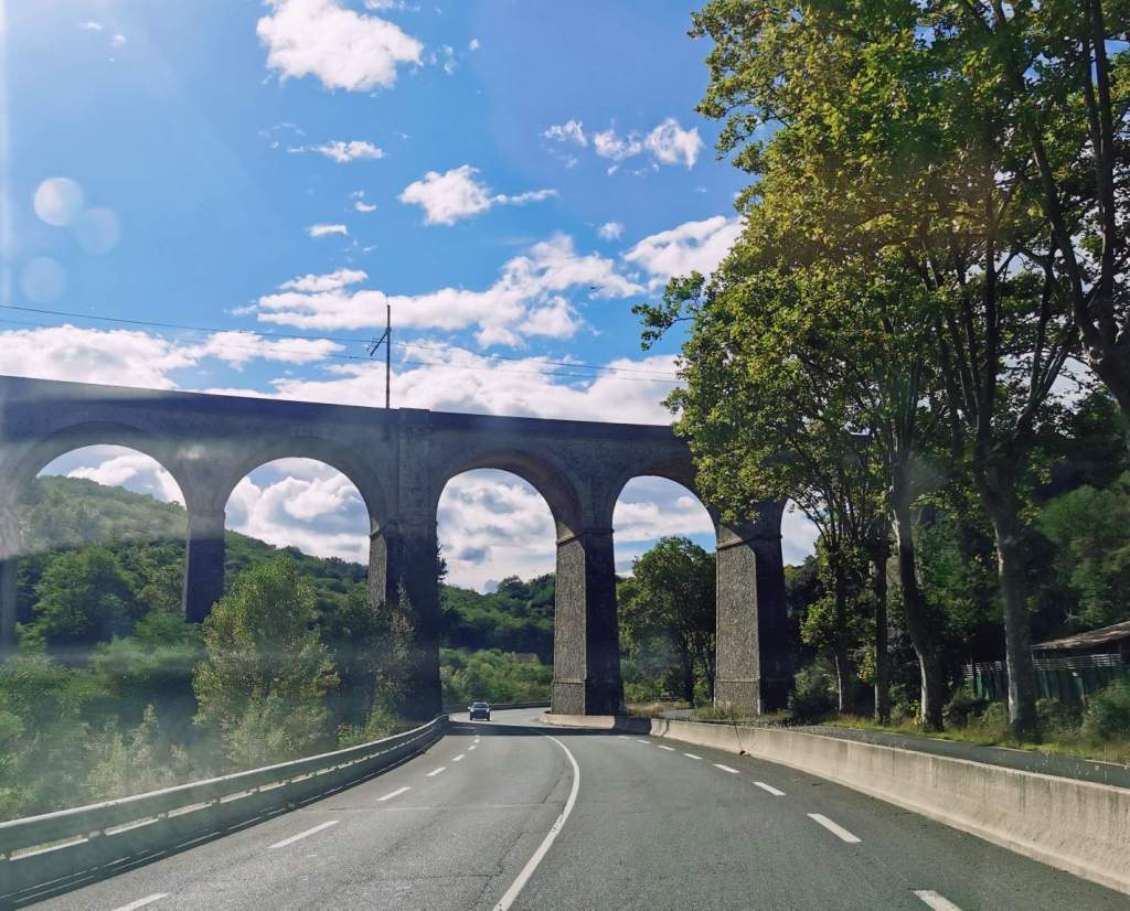 Tegen dat we de koffie en het ontbijt buiten op tafel hebben staan, is het al behoorlijk warm. Zo warm zelfs dat we de stoelen een stukje verschuiven naar een schaduwplek. We doen op ons gemak, en bekijken intussen wat opties om naartoe te rijden. Ver willen we niet rijden, het is wel mooi hier, en dat geldt ook voor het weer. Het eerste plan is een camping in Béziers, zo’n 10 kilometer verder. Net voor we er zijn slaan we nog wat boodschappen in voor enkele dagen. Het is een megagrote supermarkt, bijna een compleet overdekt winkelcentrum, dus het duurt even voor we alles gevonden hebben. Als we de boodschappen in de bus aan het laden zijn, hebben we eigenlijk ineens toch geen zin meer om in een grotere stad te blijven. We verzetten opnieuw de navigatie en rijden zo’n 50 kilometer verder naar een kleine camping, in een dorp wat maar amper op de kaart staat. Raampje open, genieten van het uitzicht, en af en toe een stukje vastleggen op foto.