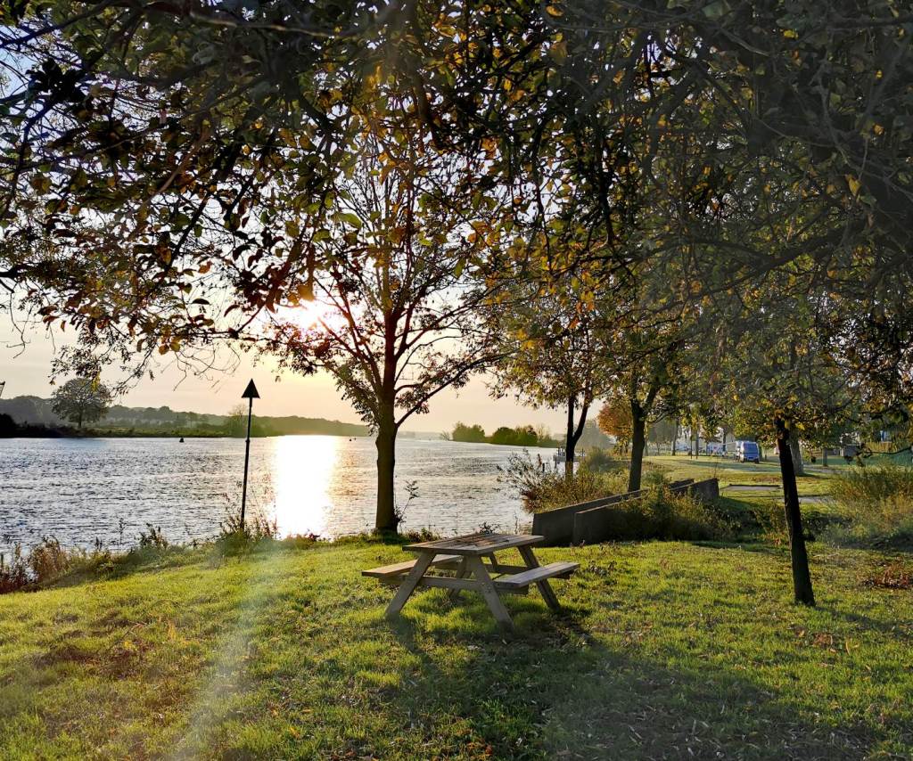 Bij de camping is een taverne, waar we een tafeltje gereserveerd hebben voor ’s avonds. Makkelijk, nu hoeven we niet meer op zoek naar een supermarkt. We zitten in de verwarmde veranda met, alweer, uitzicht op de Maas. Mooie plek, en het eten smaakt voortreffelijk. Echt top. Zeker de moeite om nog eens terug te gaan.