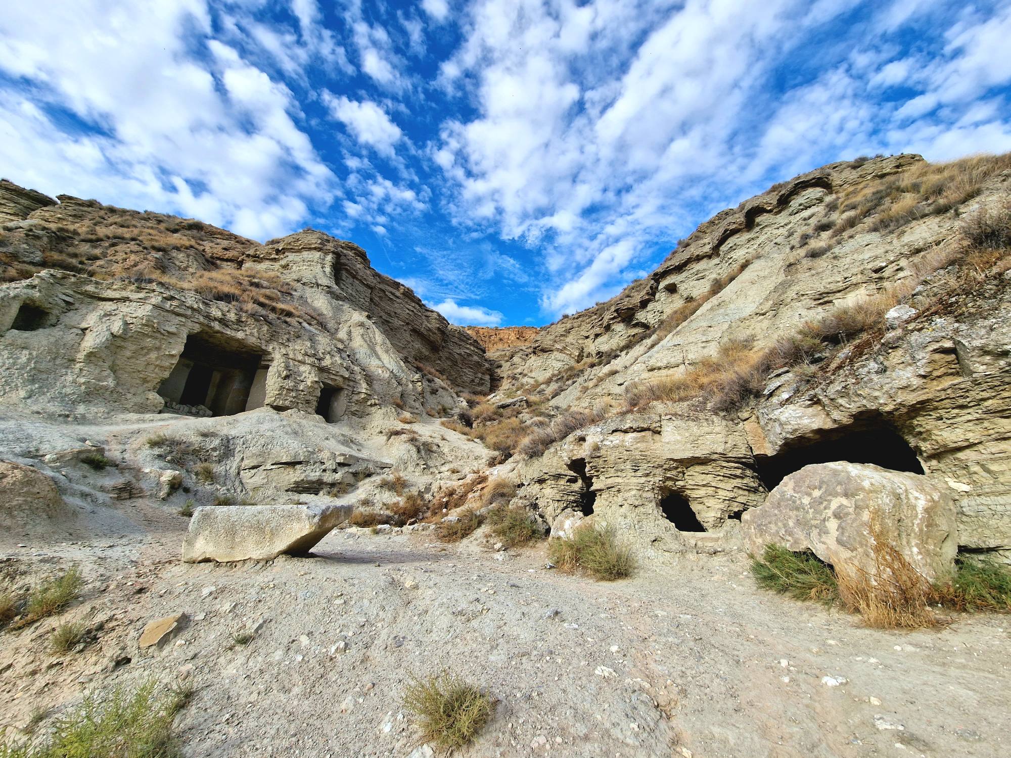 Er was eigenlijk regen voorspeld vandaag, maar die hebben we precies gemist. We houden onze eigen siësta met een koude lunch, flesjes water en een paar mokken koffie. Vroegavond bezoeken we de grotwoningen. Ongelooflijk dat tot ongeveer 1960 hier nog gezinnen woonden. Alhoewel…. ondanks dat het niet mijn droomhuis zou zijn, ik zou er best hebben kunnen wonen denk ik.