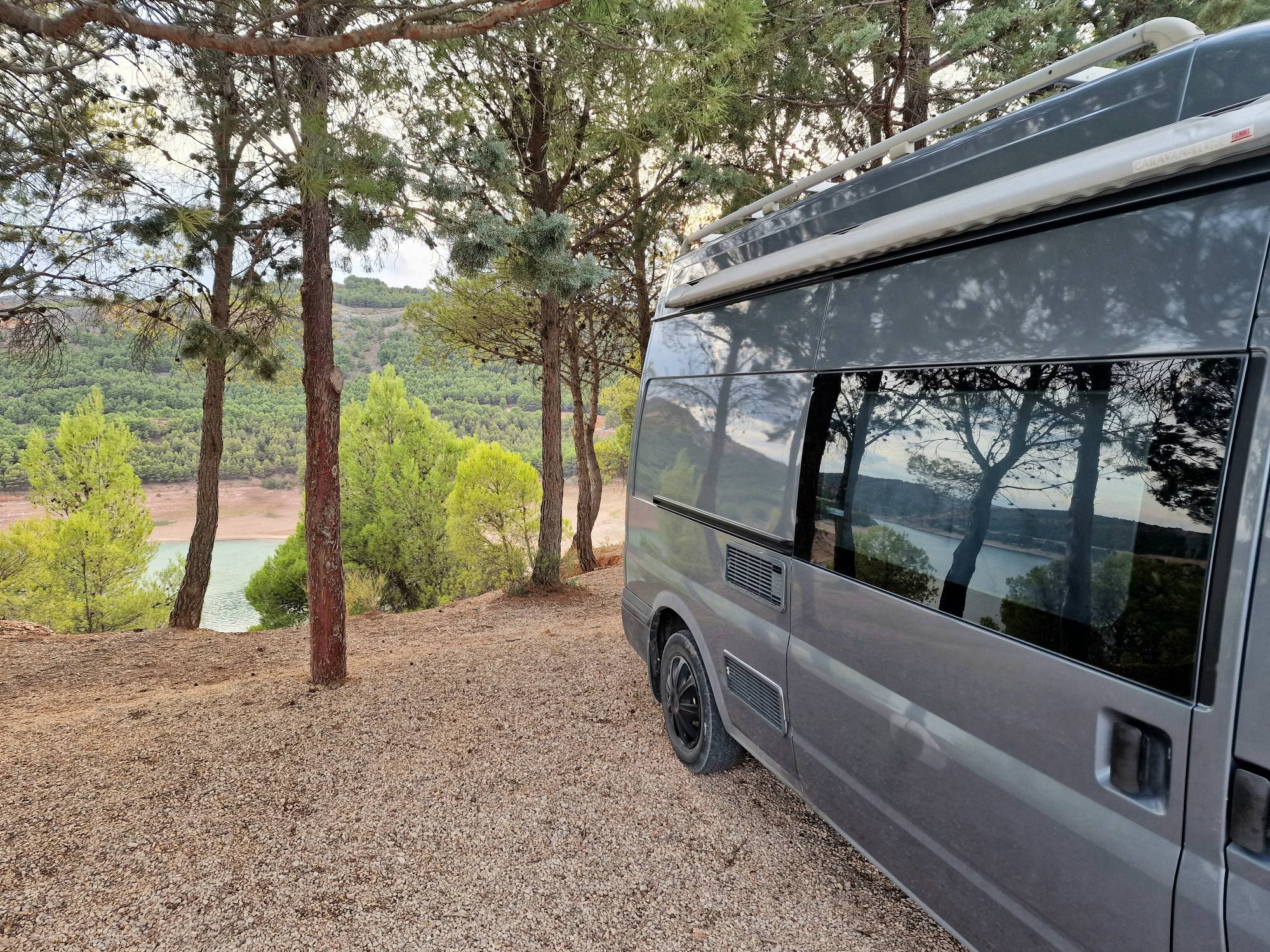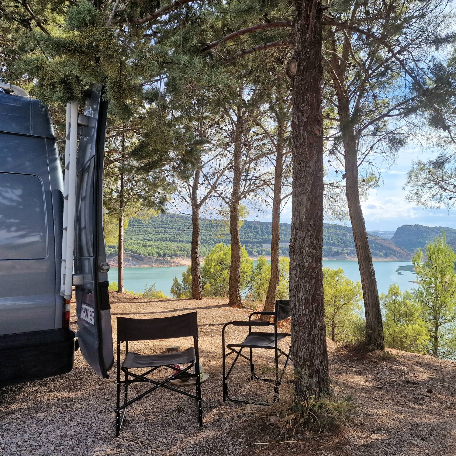 Na ruim twee uur rijden vinden we een plekje om vandaag te blijven staan. Het is geen officiële camperplaats, maar we riskeren het maar. Dat we gisteren niet echt een uitzicht hadden, maakt vandaag dubbel en dwars goed.