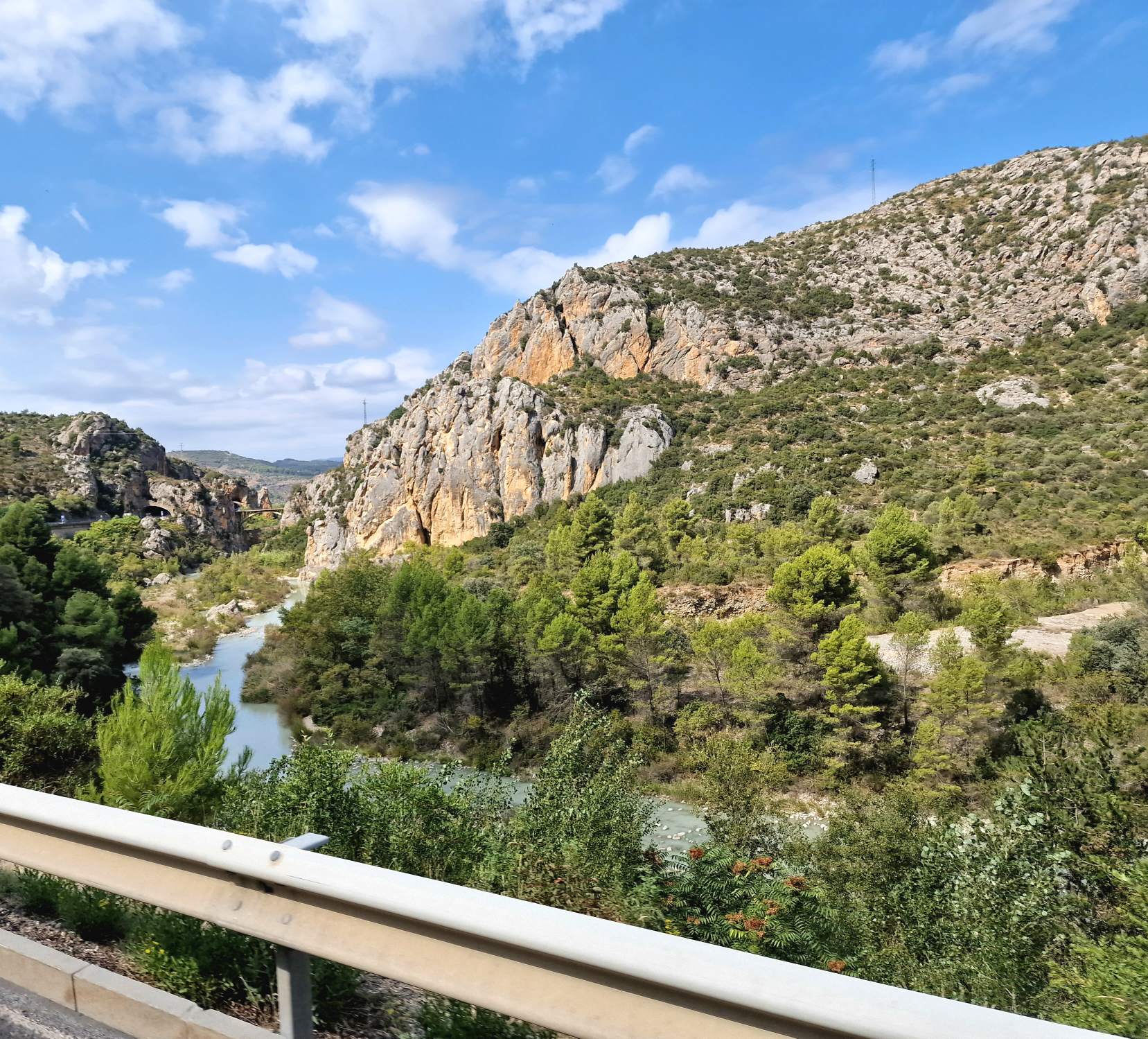 Een paar kilometer verderop stoppen we in Puente de Montañana. Het stond ergens aangegeven als een leuk middeleeuws dorpje. We wandelen er eens door, maar vinden er weinig aan. Oke, het heeft een paar oude huizen, maar middeleeuws of speciaal mooi? Neuh.