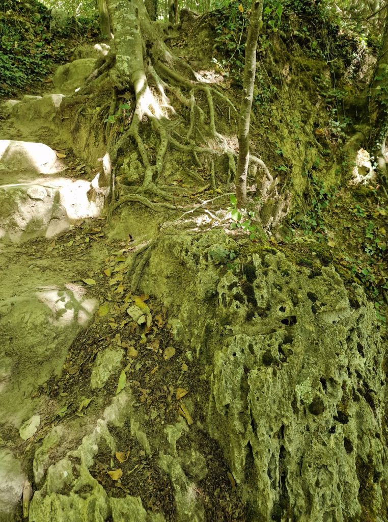 Het is een wandelroute van zo’n 7 kilometer in totaal. Vanwege het vele klimmen en dalen vind ik het best een pittige route, maar nog wel goed te doen. De vele stenen in de grond, en de dikke trapachtige boomwortels maken het klimmen wat makkelijker.