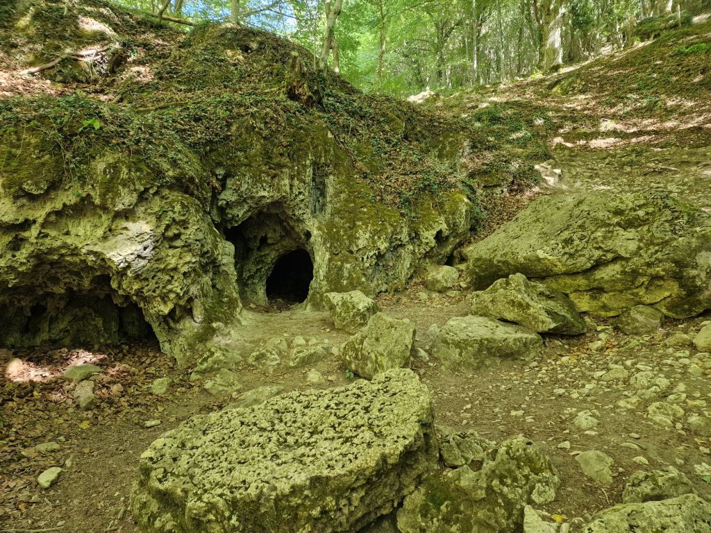 Het is maar een klein eindje rijden naar het naburig dorpje Baquedano. Van daaruit start een mooie wandelroute. Zeggen ze. Dat gaan we dan maar eens bekijken. We betalen 5 euro voor de parking, moeten ter plekke nog onze wandeling gaan reserveren in een gebouwtje, en krijgen vervolgens de reservatie en plattegrond via mail. Wij wisten niet dat we eigenlijk hadden moeten reserveren, maar ze willen dus het aantal wandelaars tegelijk in het bos beperkt houden. Achteraf wel heel fijn, want zo is het er nooit te druk. Wandelschoenen aan, flesjes water in de rugzak, ook maar een jasje erbij want het is hier óf heet óf koud. We moeten eerst het dorpje door, en vervolgens via een lang pad het bos in.
