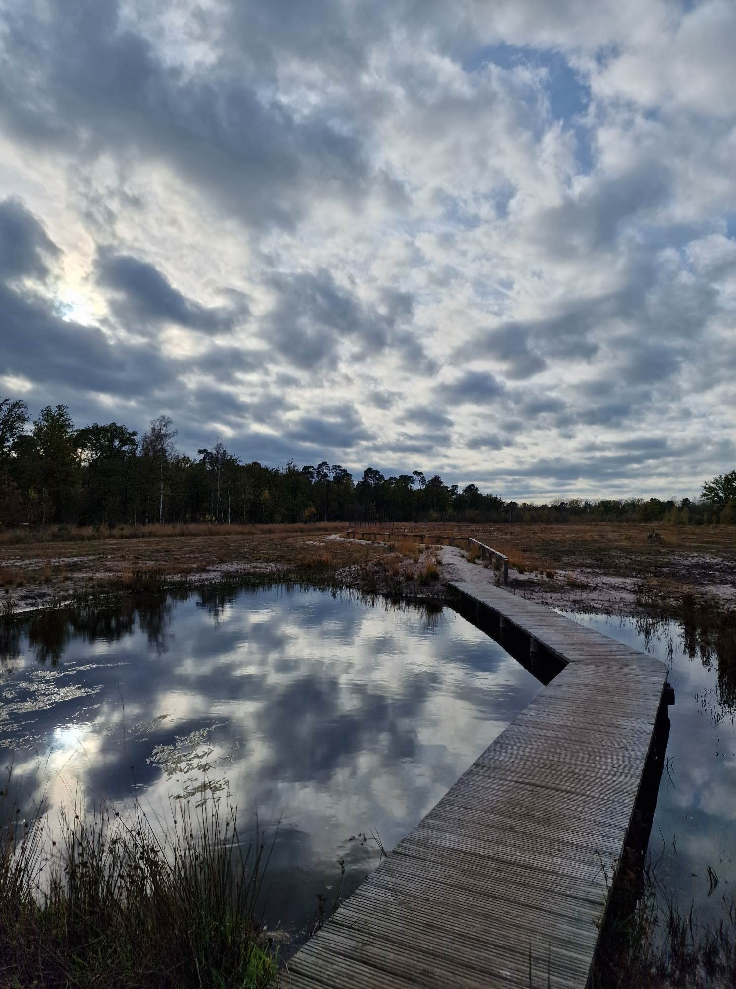Na een langzame start met een kan koffie en een broodje kaas is het tijd om de wandelschoenen te strikken. We zijn nog keilui, en even twijfelen we om de wandeling van 2,9 km te gaan doen, maar resoluut kiezen we de wandelroute uit van 10 kilometer. Het is fris, het waait wat, maar het is droog en het blijft droog. Wat een geluk.