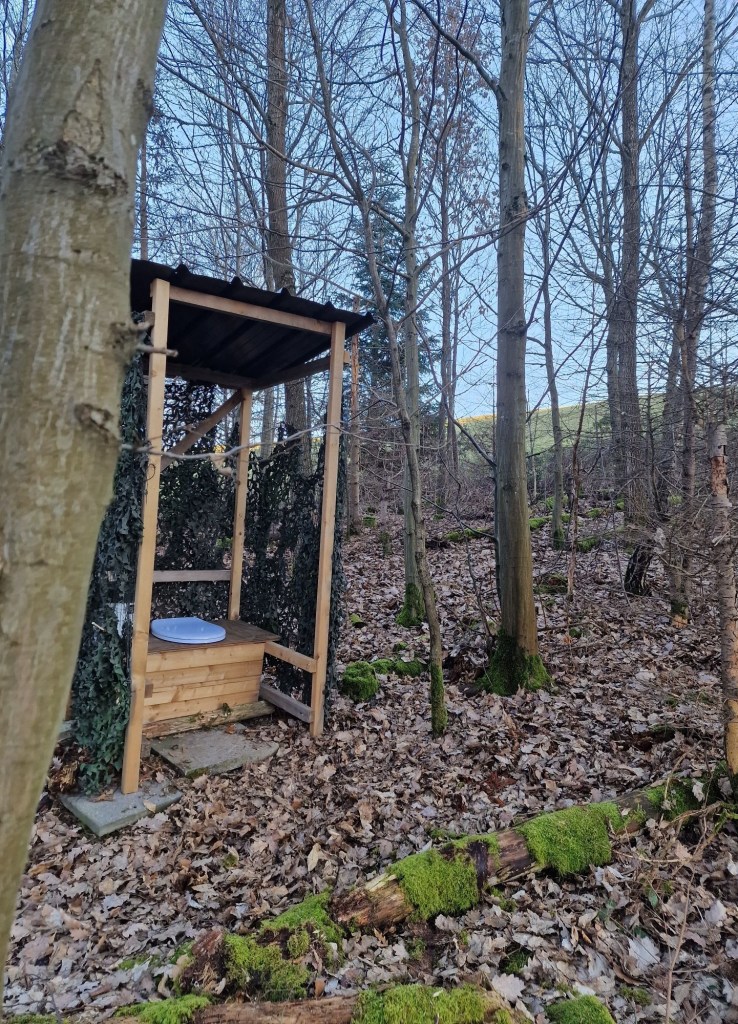 Moeiteloos vinden we de plek die de eigenaar aangegeven had. Tussen bos en weides. Afgelegen, maar met de nodige voorzieningen zoals een stookplaats en privé sanitair. Met uitzicht.