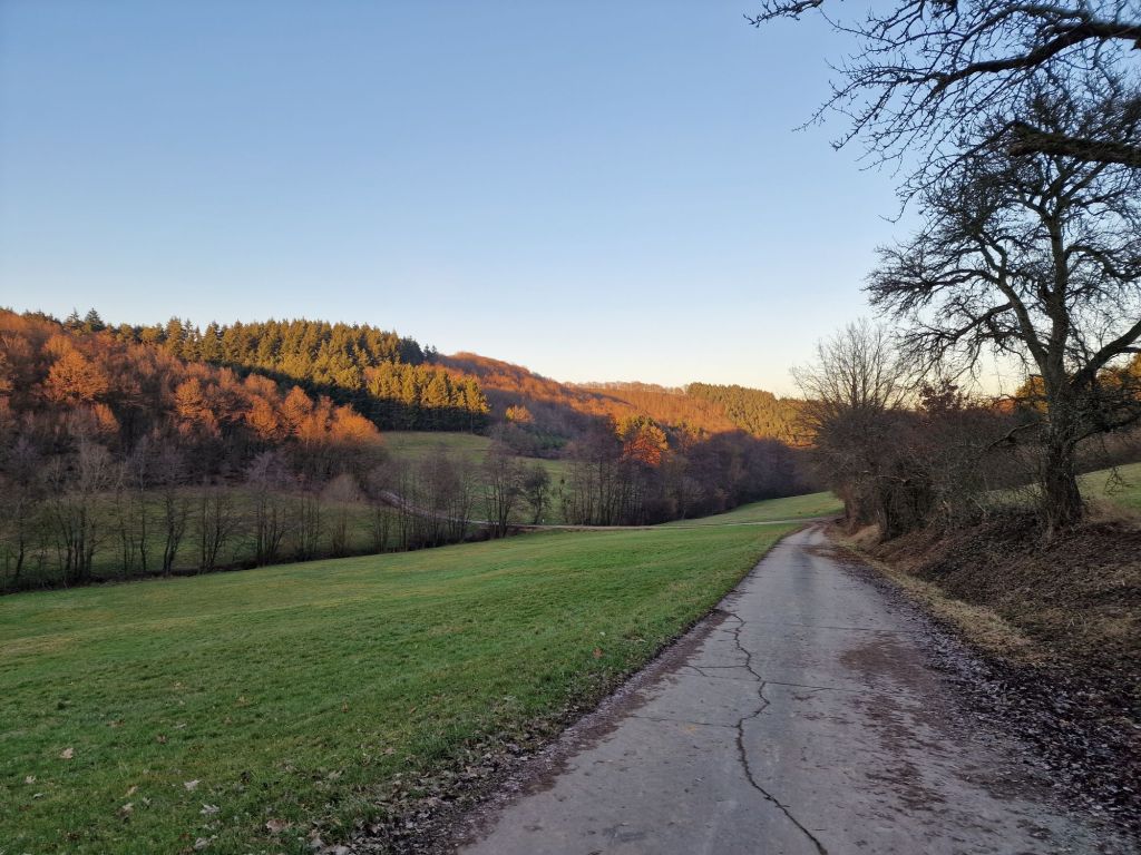 Onderweg schijnt de zon keihard, en baal ik al dat ik mijn zonnebril vergeten ben. Nuja, vergeten, …… tis eigenlijk nogal logisch dat je dat rond deze tijd niet standaard in je tas hebt zitten. Ik google wat het weer gaat worden op onze bestemming, en wat een kadootje zeg, zo half februari, gewoon een graad of 10. Met veel zon. Blij dat we goed gekozen hebben, vervolgen we onze weg naar Buborn. Een klein dorpje in Duitsland, een uur of vier rijden.