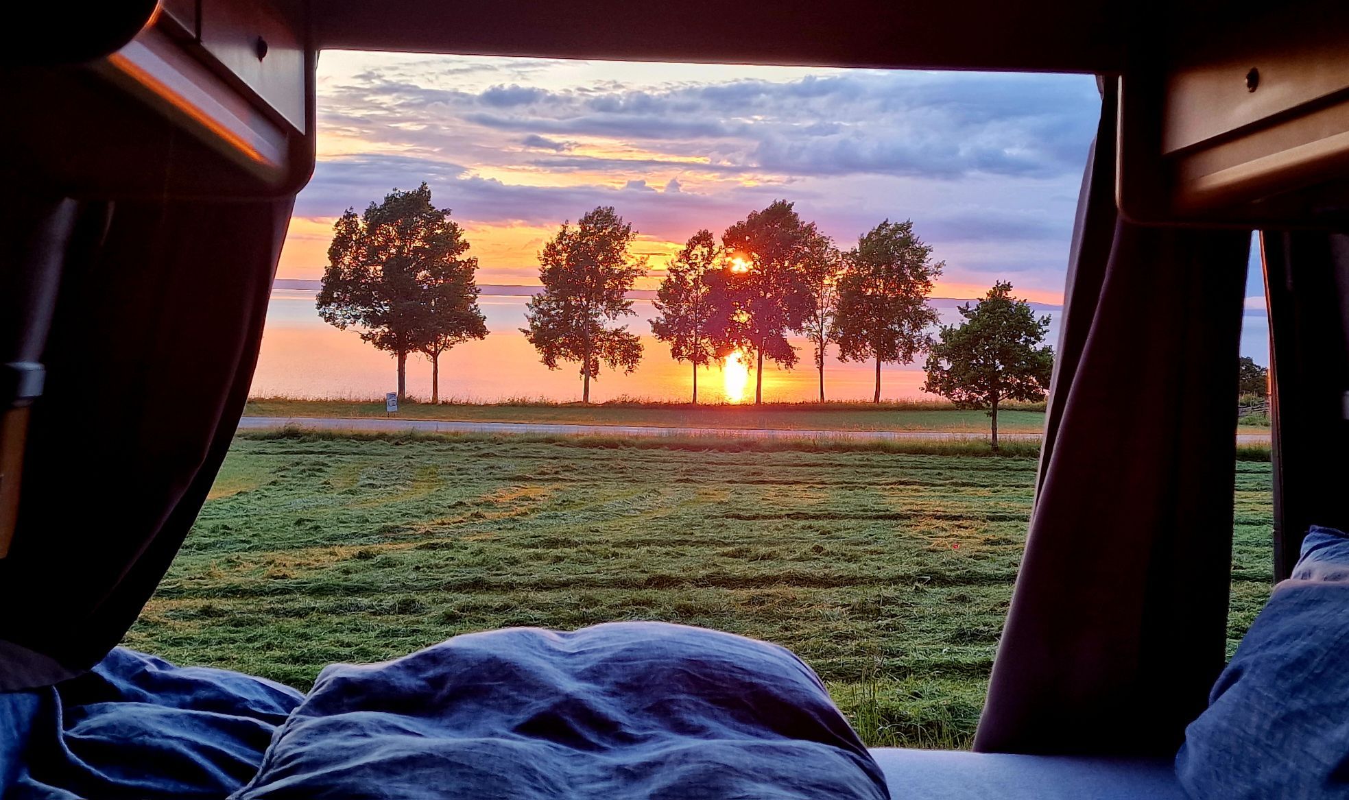 Het is al bijna middernacht als ik dit typ. Heel erg donker is het nog steeds niet. Het uitzicht vanuit de camper is nog steeds fantastisch. Nog snel een laatste foto. Bijna middernacht. Ik denk dat ik vannacht niet slaap, maar gewoon de hele nacht naar buiten ga liggen kijken.
