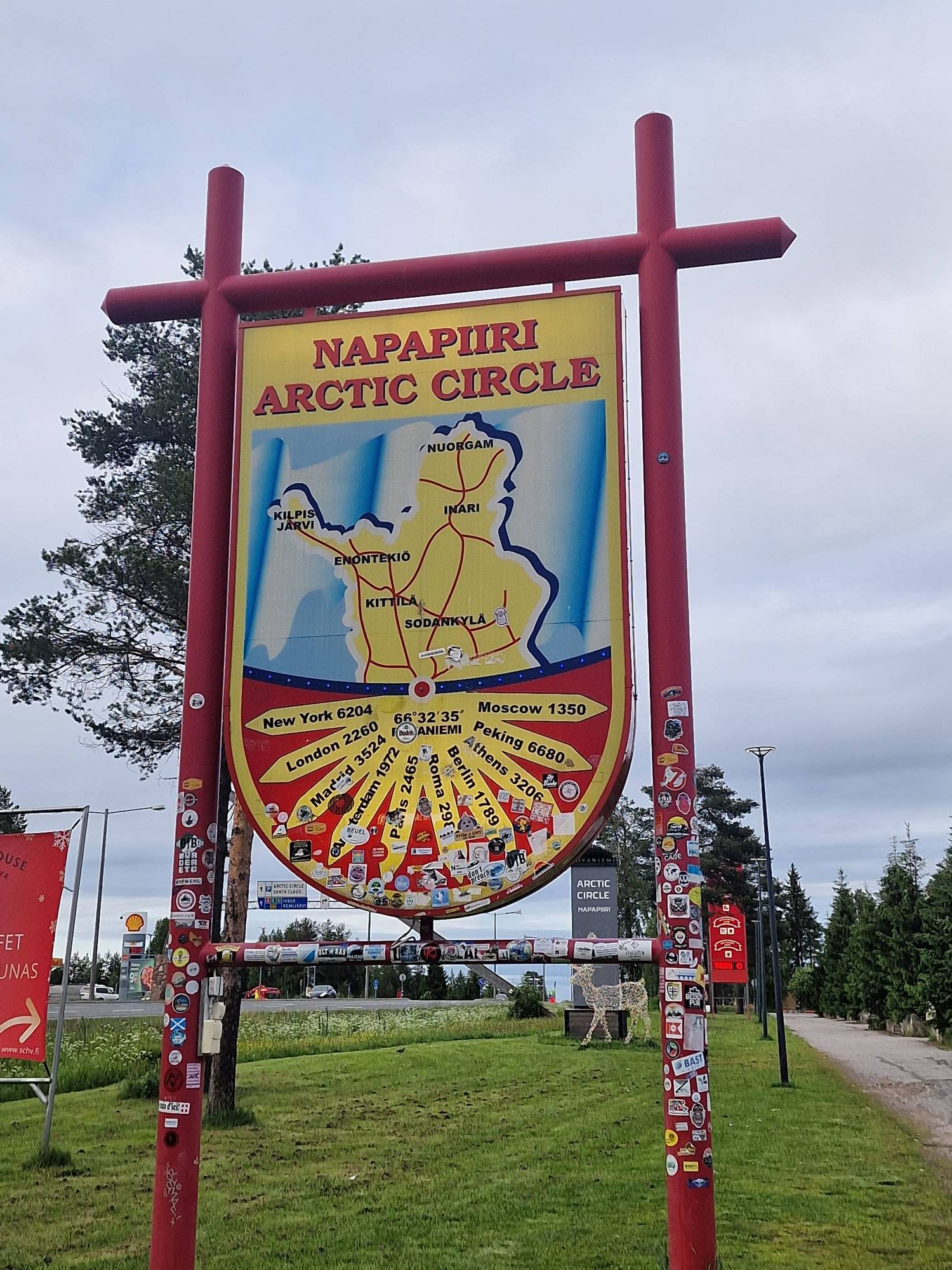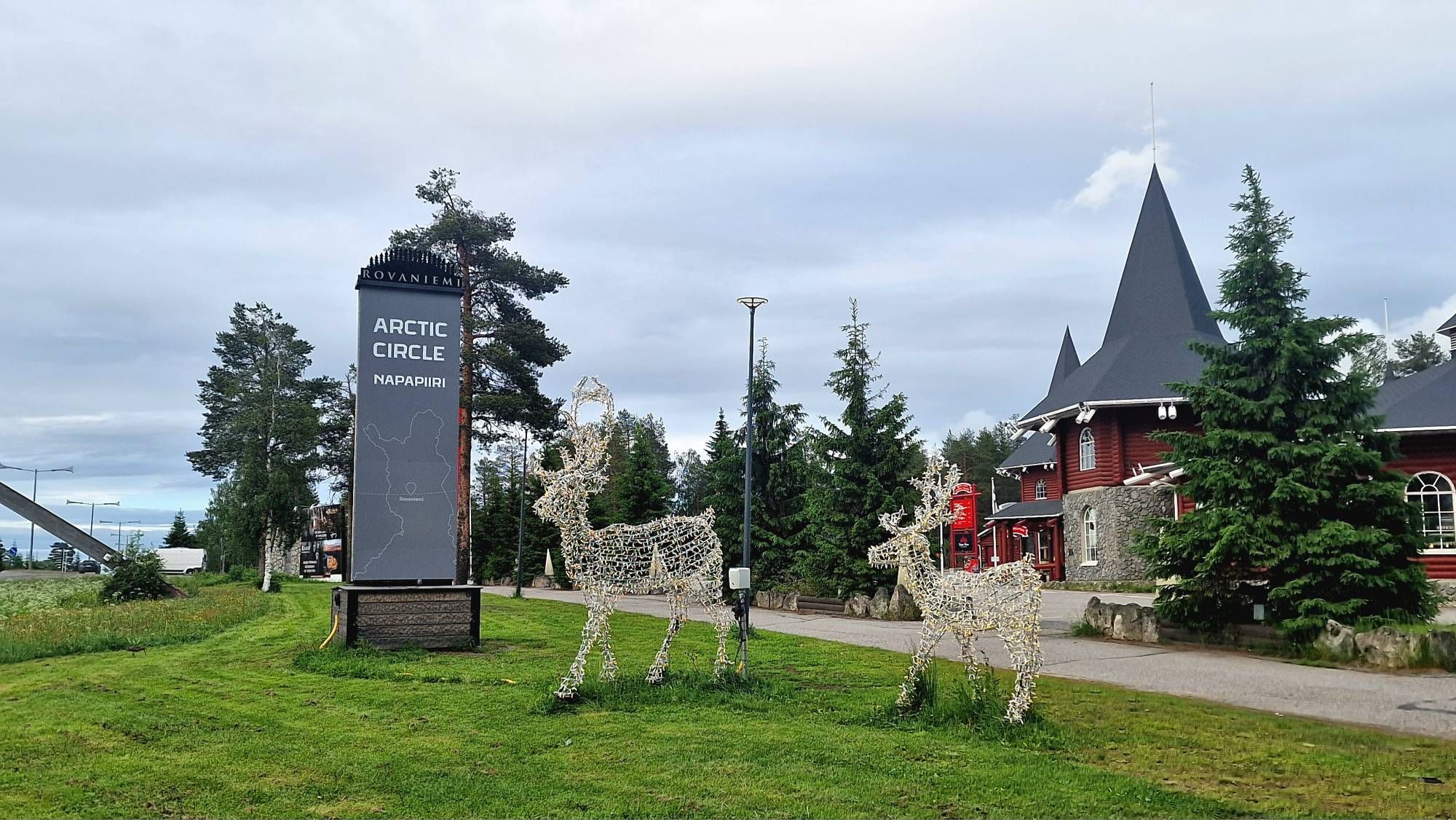 In Finland is het meteen een uur later, dus het is al vrij laat als we in Rovaniemi zijn. We rijden het centrum voorbij en stoppen aan het Santa Claus Village. Oftewel het dorp waar de kerstman woont. Op die parking mogen campers gratis overnachten. We gaan het doen. Het is niet de mooiste plaats, maar we willen eigenlijk eerst eten. Misschien dat we daarna nog verder rijden. Het is licht genoeg.