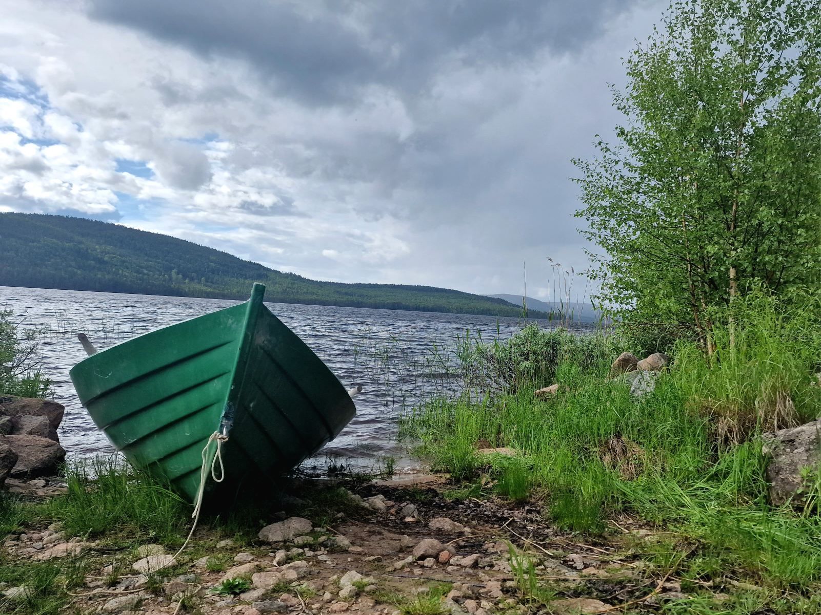 Tegen middernacht laten we het vuur uit gaan. De zon staat intussen een stukje verder aan het meer. Prachtig. Maar of we hier ook echt 2 nachten gaan blijven, weten we ineens niet meer zo zeker.