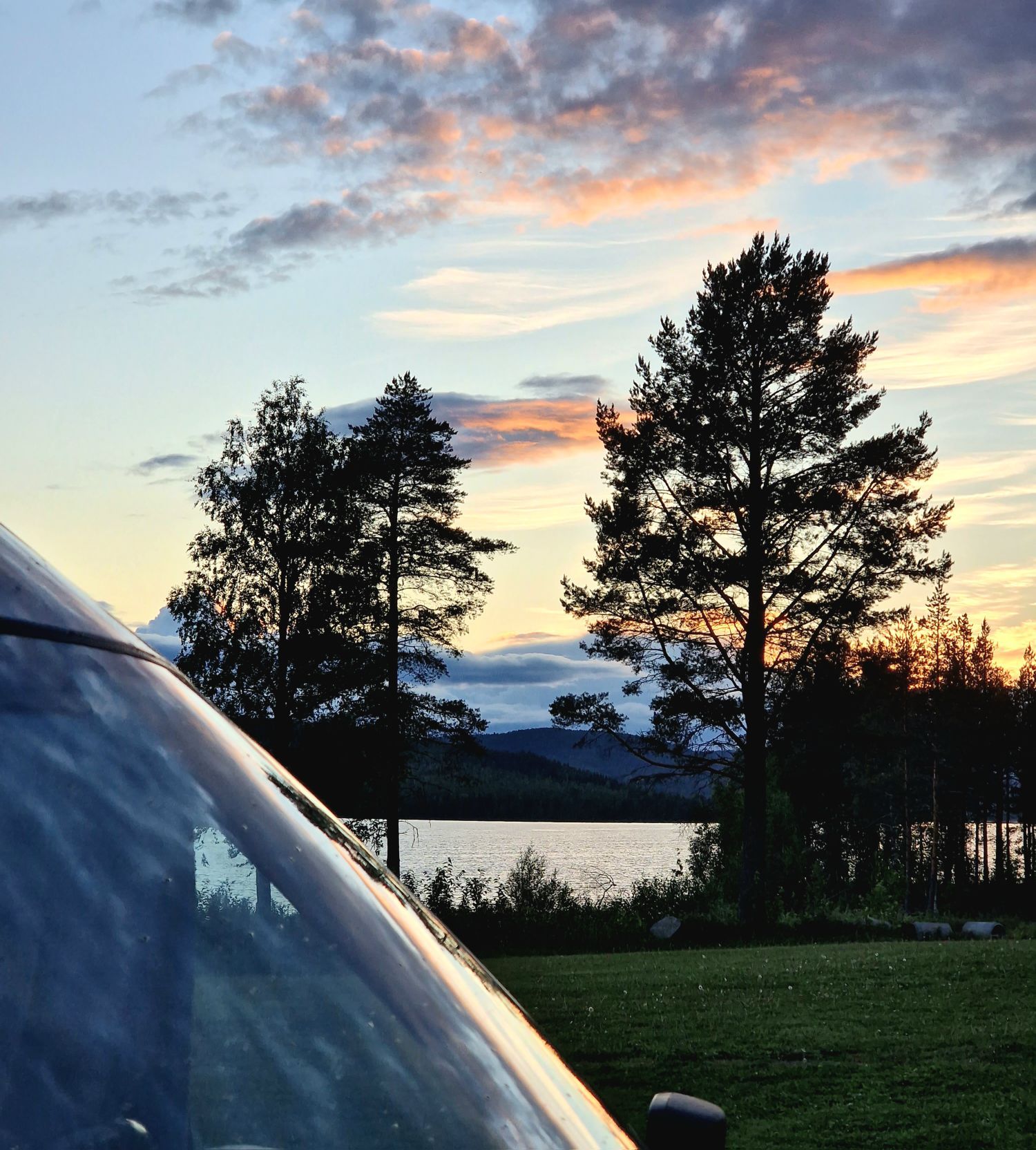Het is hier echt wel leuk. Maar. Máár….. de muggen zijn hier ook echt wel enorm aanwezig. In de camper, ook al doen we de deur steeds toe, buiten. Waar we ook gaan of staan, ze zoemen rond je hoofd, en je loopt de hele tijd te meppen. Tevergeefs. We wisten uiteraard dat er in Scandinavië muggen zijn maar zo veel als nu hebben we de vorige keren niet gehad. Volgens de campingeigenaar is het dit jaar ook extreem. We koken en eten binnen in de camper. We zijn nog geen spul gaan halen bij een apotheek, (ja, stom ja) dus we proberen maar andere manieren om er vanaf te raken. Geurkaars werkt niet, een aftershave of andere geur sprayen werkt niet. Een ventilator werkt niet. Dan maar weer vuurtje stoken. Ook dat werkt alweer niet.