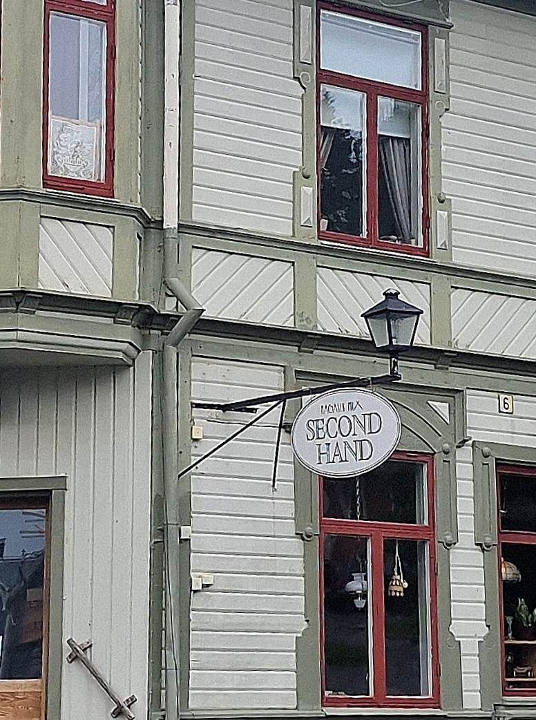 Het blijft bijna de hele weg regenen. In Vilhelmina wandelen we even wat straten door. Ik ken de weg nog van de vorige keren. Er is daar een leuk tweedehandswinkeltje, maar die blijkt intussen verhuisd naar een groter pand aan het einde van de straat. Helaas vandaag gesloten vanwege de midsommar. Bij de supermarkt pakken we nog een brood op en stellen de navigatie in op een camping in Saxnäs. Deze ligt op de wildernissroute, kunnen we daar ook nog mooi een stukje van meepakken.