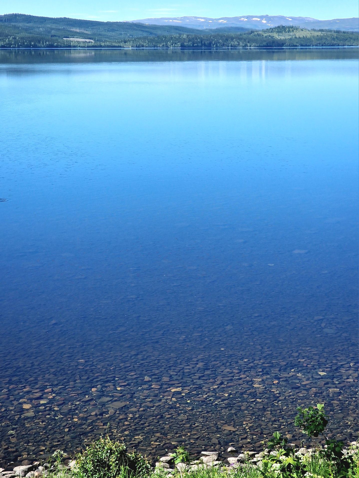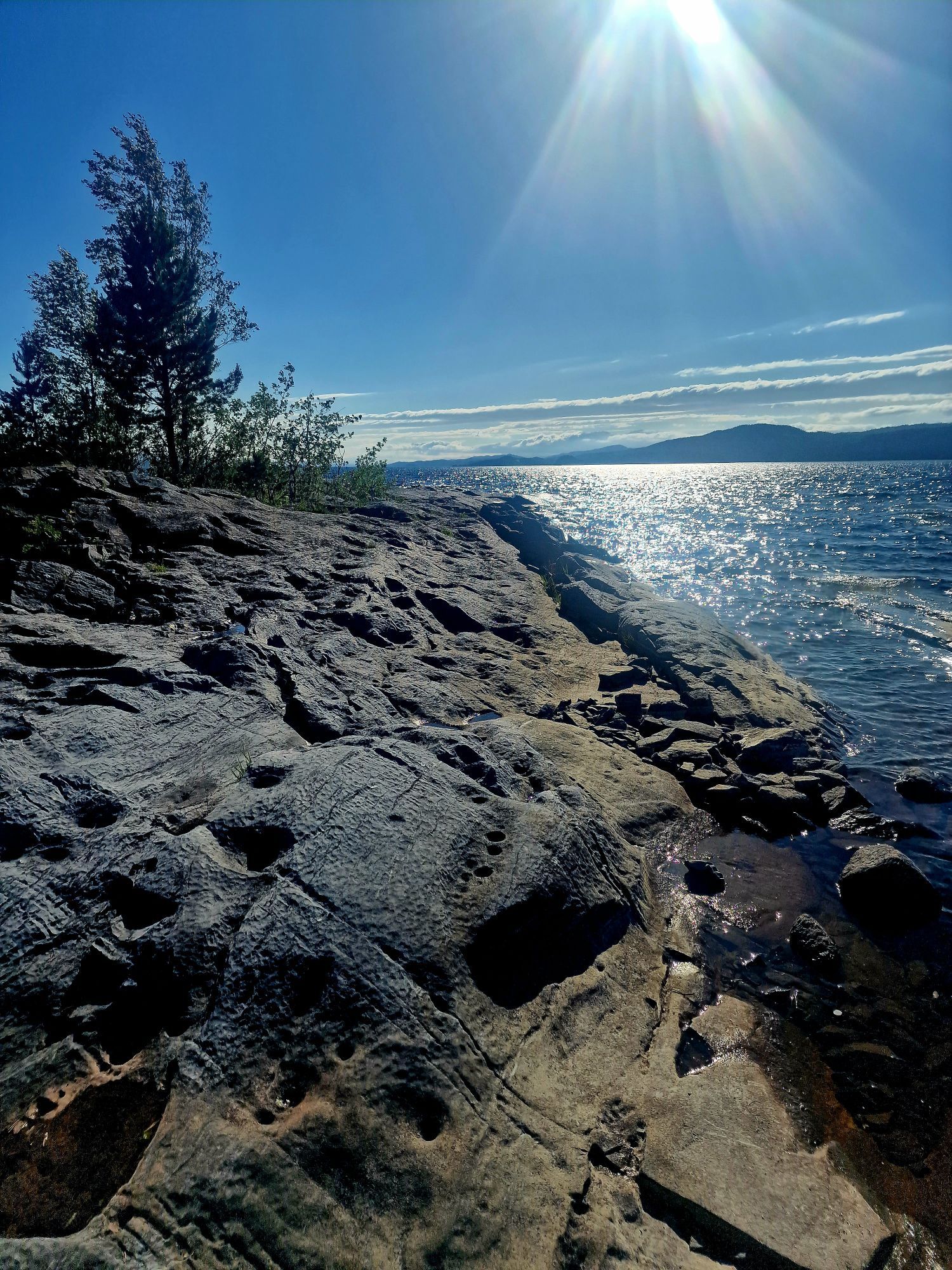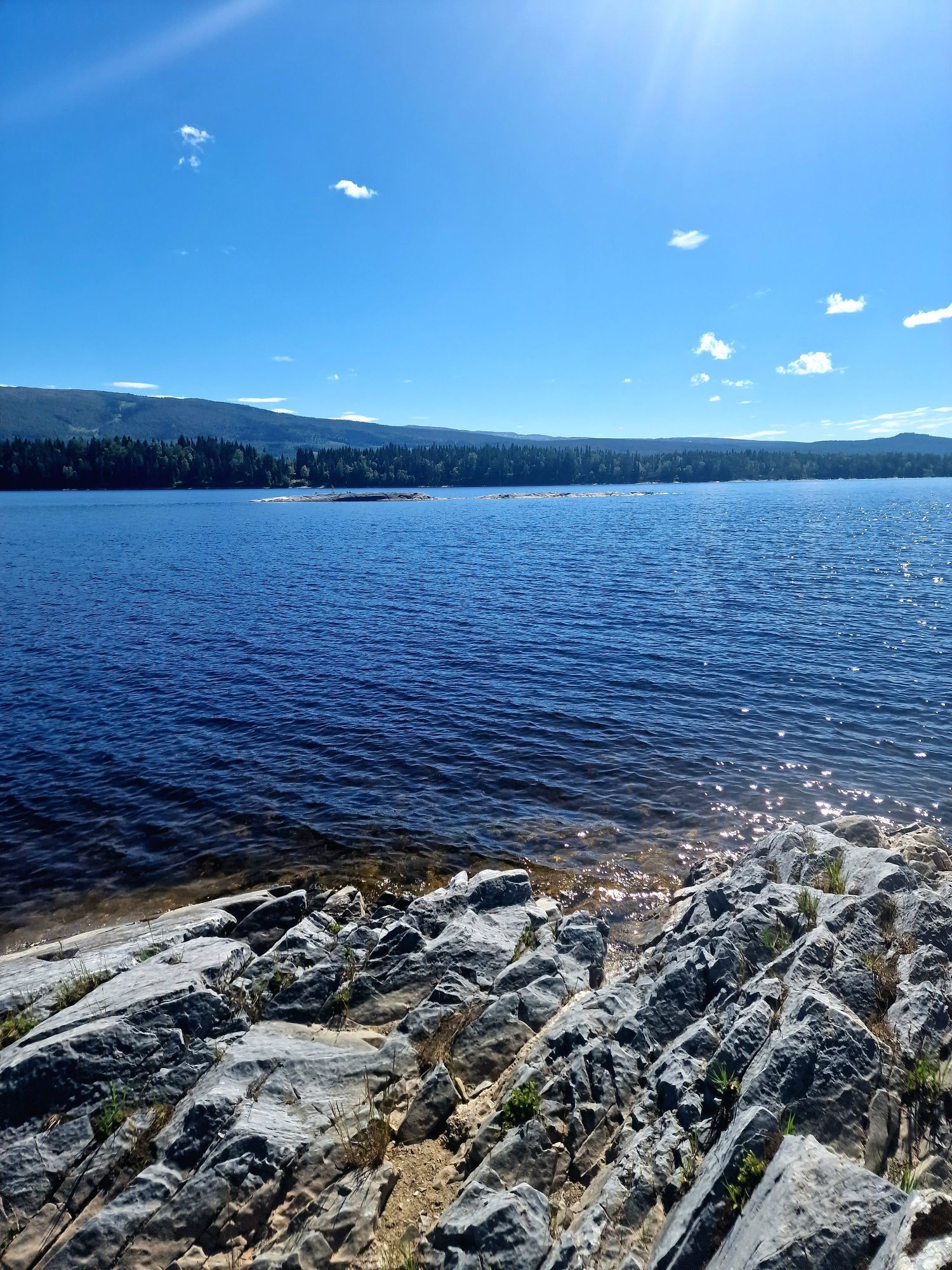 ‘Zullen we anders hier blijven staan?’ Vraagt Luc, die het intussen wel helemaal gehad heeft met die beestjes. Ik snap het ook wel, hij heeft dan ook veel meer muggenbulten dan ik. Het is ook helemaal geen verkeerde plek hier voor een overnachting maar om nu de hele dag op deze parking te blijven, zie ik ook weer niet zitten. Daarbij, gisterenavond hebben we beslist om naar een camping in Snåsa te rijden, dus dat gaan we doen ook. Het is een hele mooie weg en helemaal niet druk. We genieten van de omgeving, en stoppen soms even. Het zijn niet zo heel veel kilometers die we vandaag moeten doen, maar we doen er wel lang over. De weg kronkelt langs rotsen, langs meren, langs watervalletjes, langs mooie recente huizen maar ook langs oude verlaten houten hutjes. Het lijkt soms net alsof we door een postkaart rijden. Enkele sfeerbeelden van onderweg naar de camping: