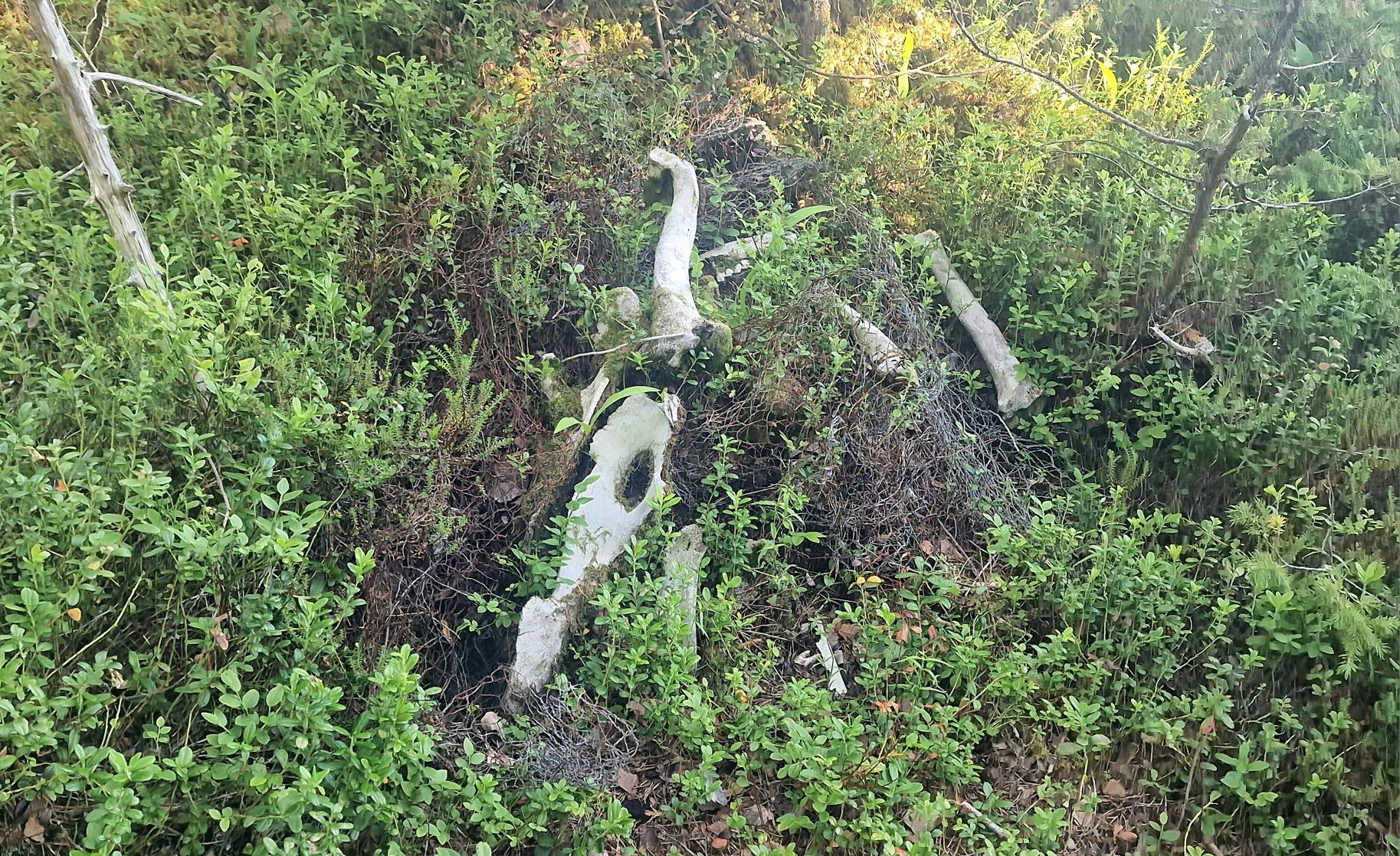 Onderweg ook nog enkele verhalen en sages te ontdekken. Een graf uit de oudheid. Een schedel van een eland gewikkeld in ijzerdraad wat hier ooit ongelukkig aan zijn einde gekomen is. (Zie één van de foto’s.) Er wordt gevraagd de beenderen te laten liggen. Mooi dat dat gerespecteerd wordt hier. De andere verhalen horen we misschien morgen nog wel. We zijn inmiddels een paar uur verder en hebben honger. Luc kookt vandaag. En dat doet ie goed. Na de barbecue wat hout erop. Was het vanmiddag nog heel warm, inmiddels is het al flink afgekoeld. Maar we amuseren ons hier wel, op deze mooie plek. Het liefst blijven we hier nog één of een paar dagen extra staan om de rest van de camping en omgeving te verkennen. En om gewoon even chill te niksen. Volgens de voorspelling gaat het vannacht en morgen regenen. We zullen wel zien wat morgen brengt.