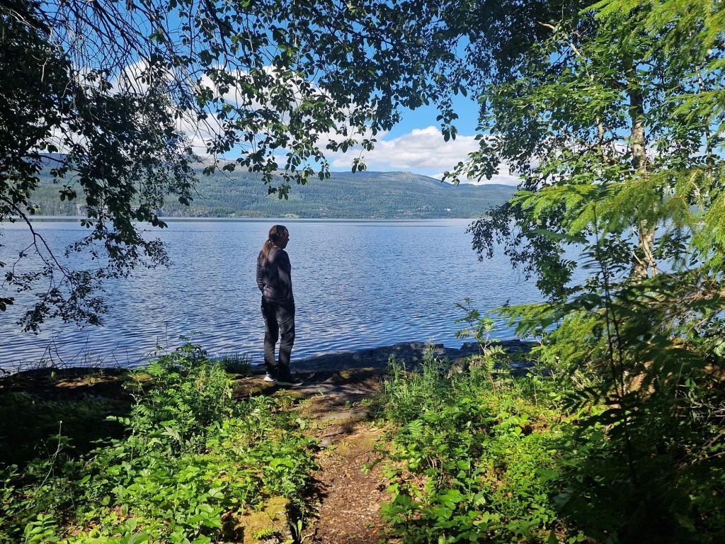 We wandelen naar een ander stuk van de camping. Een stuk dat we gisteren nog niet gezien hadden. Daar staat nu verder niemand maar het zijn nog enkele mooi verdoken plekken aan het meer.