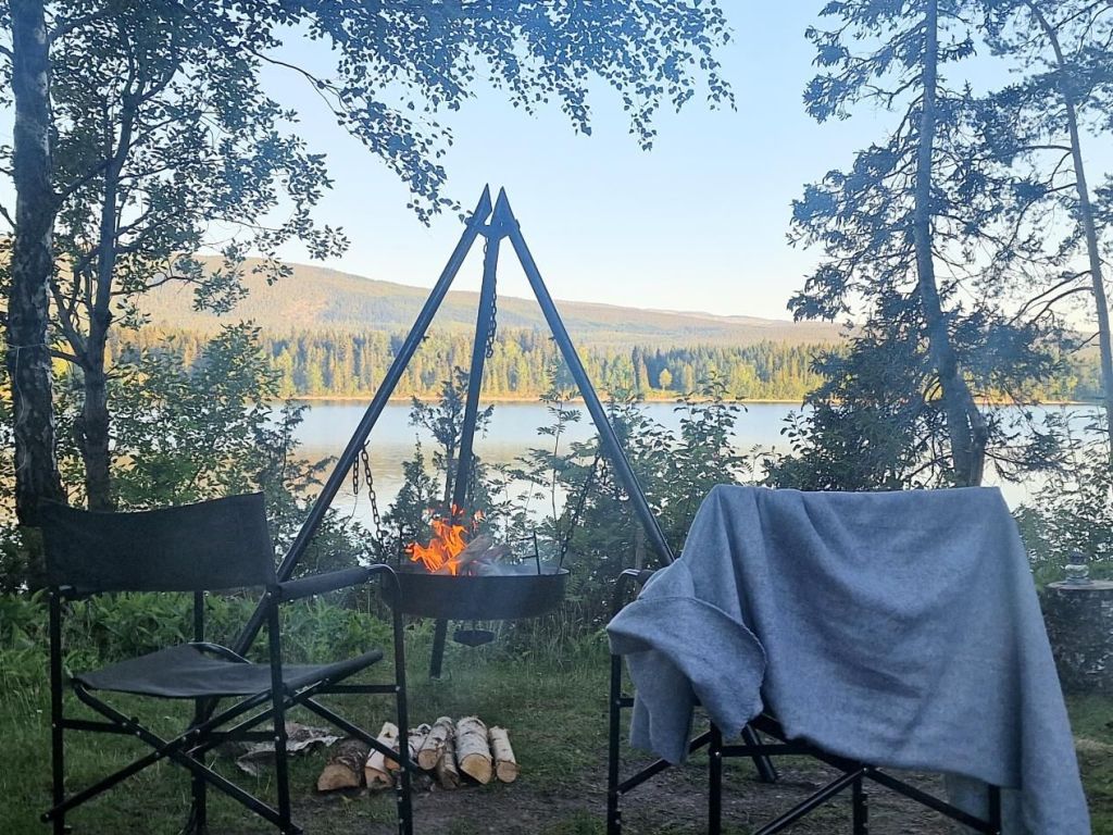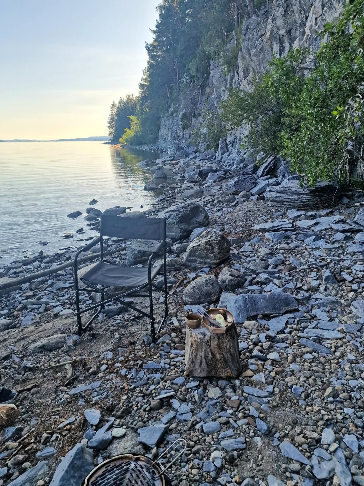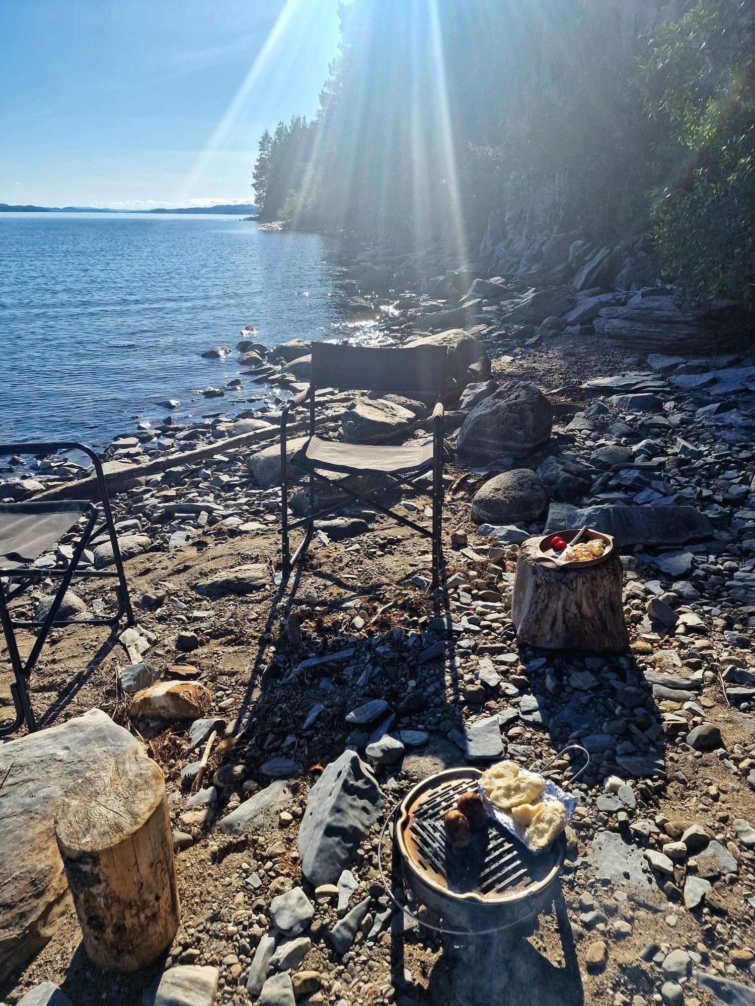 Terug aan onze camperplek kiepen we de nog redelijk gloeiende kolen over in een grotere schaal. De zon is verdwenen en ineens is het dan ook een stuk frisser. De houtblokken liggen hier klaar op de camping om te gebruiken. Wat een luxe. Morgen zou het hier 31 graden worden. We zien nog wel of we dan hier nog wat blijven hangen of niet. Stiekem vinden we het echt wel zo’n magisch mooi plekje dat we gewoon voor altijd hier willen blijven. Of oké, tot het te koud wordt dan.