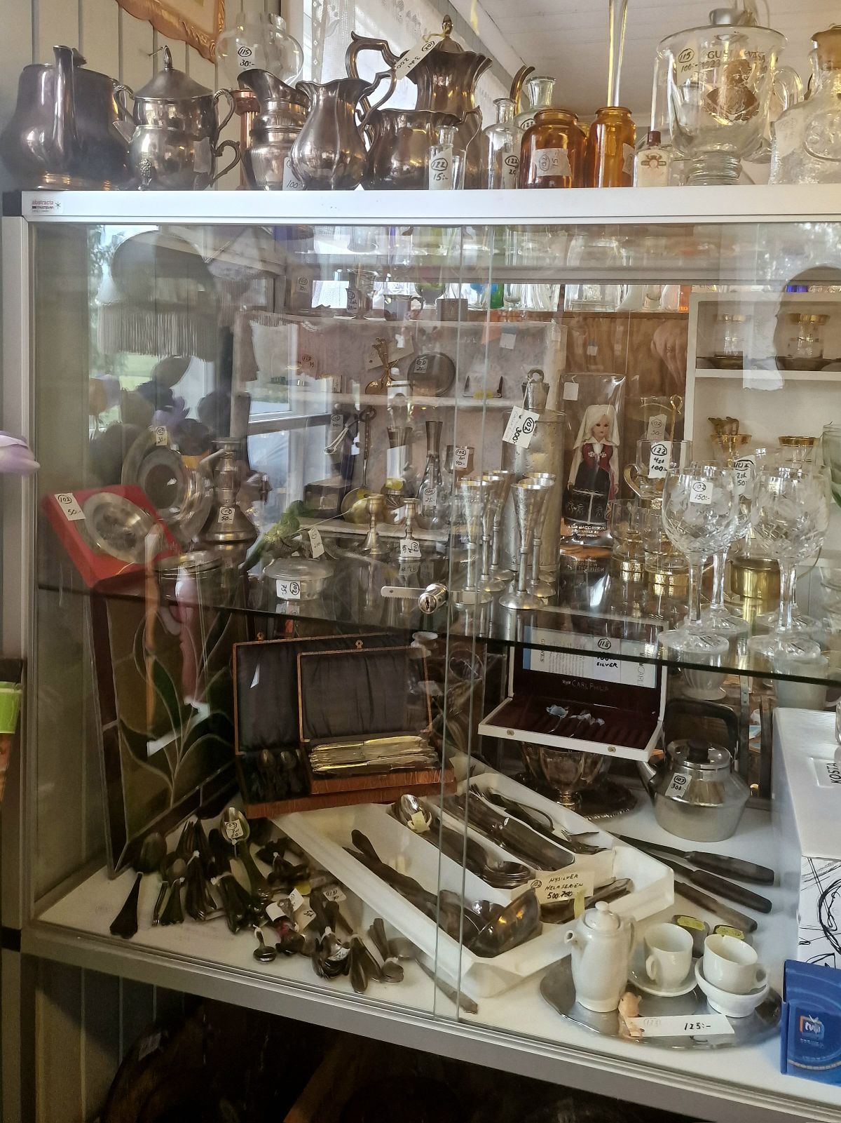 Algauw zien we nog een bordje. Hier hebben ze alles buiten uitgestald. Ze zijn nieuw en nog maar pas open, vertellen ze. De familie lijkt razend enthousiast dat ze klanten hebben en ze wandelen met z’n vijven met ons mee naar de uitgestalde tafel. (Uit latere gesprekken blijkt het te gaan om een vader, moeder, 2 zonen en een schoondochter.) Ondertussen vragen en vertellen ze vanalles. De moeder haalt een houten item tevoorschijn en vraagt of we weten wat het is. Waarna ze meteen met haar uitleg begint. Ze vouwt het ding open en meldt dat je het tegen de muur kunt hangen om je was aan te drogen. Ik had al een vermoeden. ‘Ja leuk ding hoor’ zeggen we. Maar niet voor ons. Het begint een beetje onwennig te voelen zo. Kunnen we hier nog weg zonder iets te kopen? Of hebben we dan hun hele dag verknald? Gelukkig zie ik ineens een prachtig oud houten bakje, niet te duur. Fjoew, hier komen we mooi mee weg. Bij de derde en laatste Loppis van vandaag is er wat meer te zien. Zowel binnen als buiten en er staat heel veel uitgestald. Hier kopen we een houten kistje met een groot vleesmes en vork. Ongebruikt. En wat stalen grillpennen. Komt altijd eens van pas bij een kampvuur. We hebben de smaak van Lopissen te pakken. Misschien dat we er morgen nog tegenkomen.