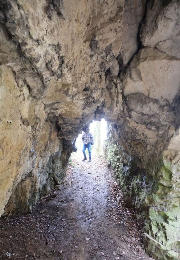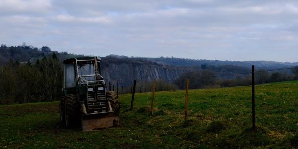 We parkeren de bus aan het oude station van Comblain-au-pont en met de navigatie aan op de komoot app starten we de wandeling. Als een stelletje mislukte padvinders missen we direct al het eerste pad. Hadden we die wel gevonden, dan hadden we via een voetgangerstunneltje onder het spoor door kunnen gaan. Achteraf gezien. Nu moesten we het spoor oversteken, wat we vrij bizar vonden dat dat zo moest. Enfin, we zaten weer op het juiste spoor. Al snel mochten we gaan klimmen en klauteren met hindernissen. Een omgevallen boom, een te modderige ondergrond op sommige plekken waardoor het pad enorm glibberig werd. Op een steil en smal stukje met veel puntige stenen moesten we echt proberen ons vast te houden aan takken en boomwortels om niet te vallen. Het was te glad en bij uitschuiven kon je te diep vallen. Even had ik het helemaal gehad maar opgeven was geen optie. Op handen en knieën kroop ik verder, me pijnlijk bewust van de scherpe stenen.