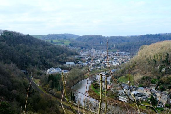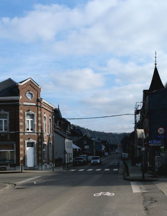 Al vroeg in de middag komen we in Tilff aan, waar je de route kunt starten. Bewegwijzerd met zeshoekige bordjes kan het niet missen. Wij missen het. En meer dan één keer. Het eerste bordje zien we uiteindelijk, verscholen achter een boom, maar dat was dan ook de enige. We zetten de bus aan de kant en proberen de route online te zoeken en op te slaan op de navigatie. De route is mooi. Kleine slingerende weggetjes waar je normaal niet zou komen. Prachtige uitzichten. Soms wel hele smalle paden, maar gelukkig treffen we geen tegenliggers. Toch kunnen we ergens niet verder en vinden we met geen mogelijkheid de goede route weer terug. We doen dus maar weer zomaar wat. Da’s onze expertise intussen.