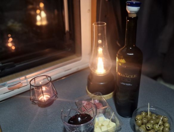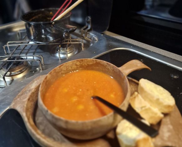De verse tomatensoep smaakt extra goed met deze kou, en de kaasfondue blijft ook favoriet op zo’n roadtrips. ’s Avonds met een hapje en drankje maken we plannen voor de volgende dag. We hebben inmiddels de autoroute-versie gevonden en opgeslagen voor de namiddag. In de voormiddag eerst nog een wandelroute die start aan zowat de ingang van de camperplaats. Geen lange tocht, een drietal kilometer, maar wel met een stijging van 70 meter, dus voor ondergetekende best een uitdaging.