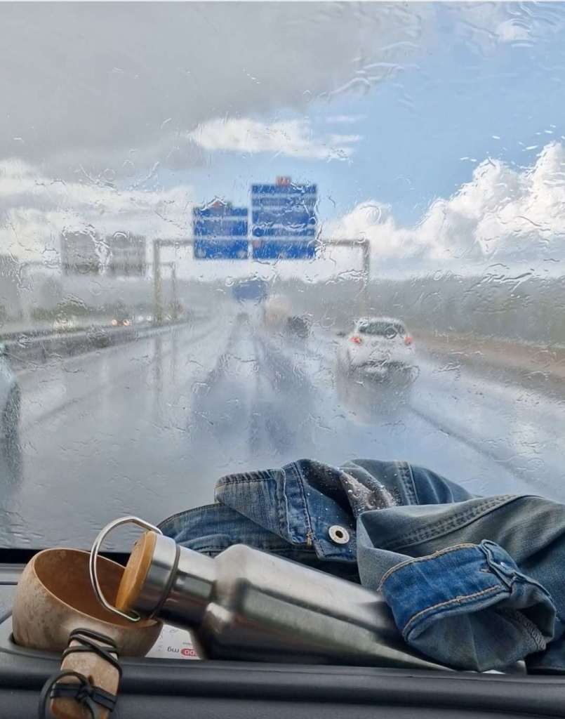 Er bestaat niet zoiets als slecht weer, begint een gezegde. Toch vinden wij de aanhoudende regen dicht in de buurt komen van slecht weer. Nu we zo kort bij huis zijn en de vakantie bijna afgelopen is, kunnen we net zo goed gewoon doorrijden.